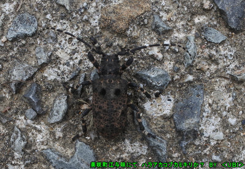 飼い主:「美咲町江与味にて、ハラアカコブカミキリのような成虫を発見しました!」