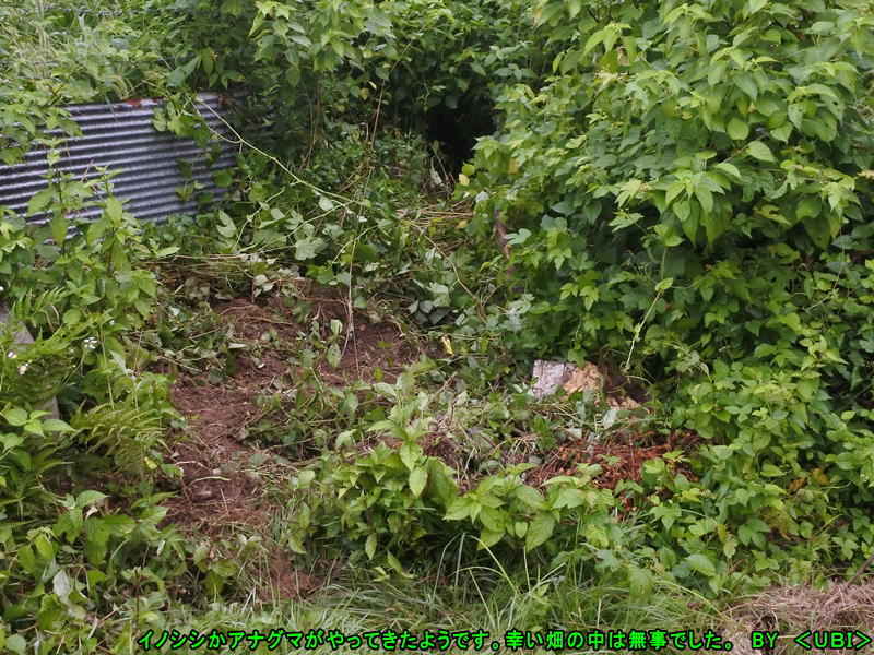 チビちゃん:「そんなことを言っていられないぜ。畑やその周りの草を刈らないと危ないぞ! 現に、今朝、イノシシかアナグマが土を掘り返し、草のトンネルを作っているぞ。」
