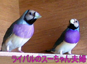 現在、僕にはライバルがたくさんいます。スーちゃん夫婦や初恋の白胸のチビちゃん等です。なかでも一番のライバルは下記の写真の向かって右側のスーちゃんであります。