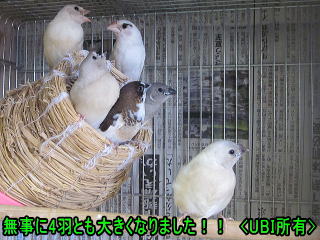 期待できる親のコキンチョウ達のペアの子供達で、4羽生まれました。ただ、心配なのは、この子達の育て親の十姉妹夫婦は、子育てがうまくありません。